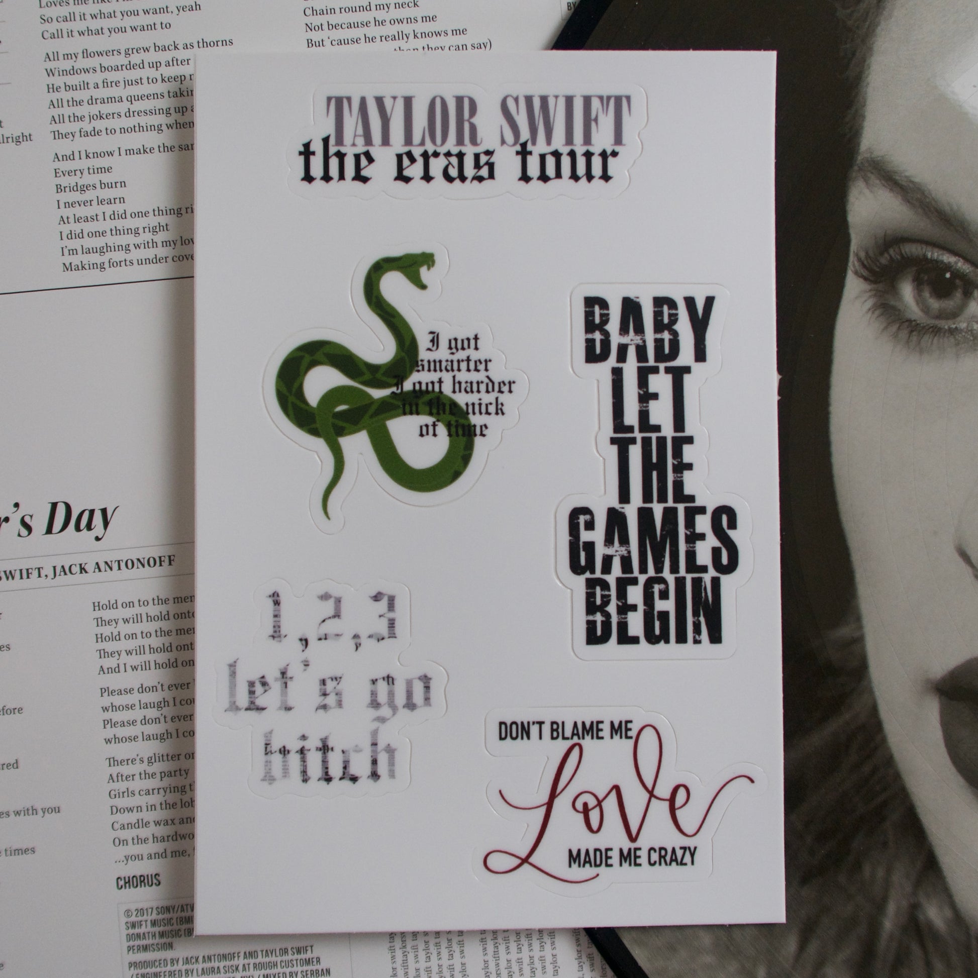 Dress up your laptop, water bottle, car window, and more with this Taylor inspired vinyl sticker sheet.