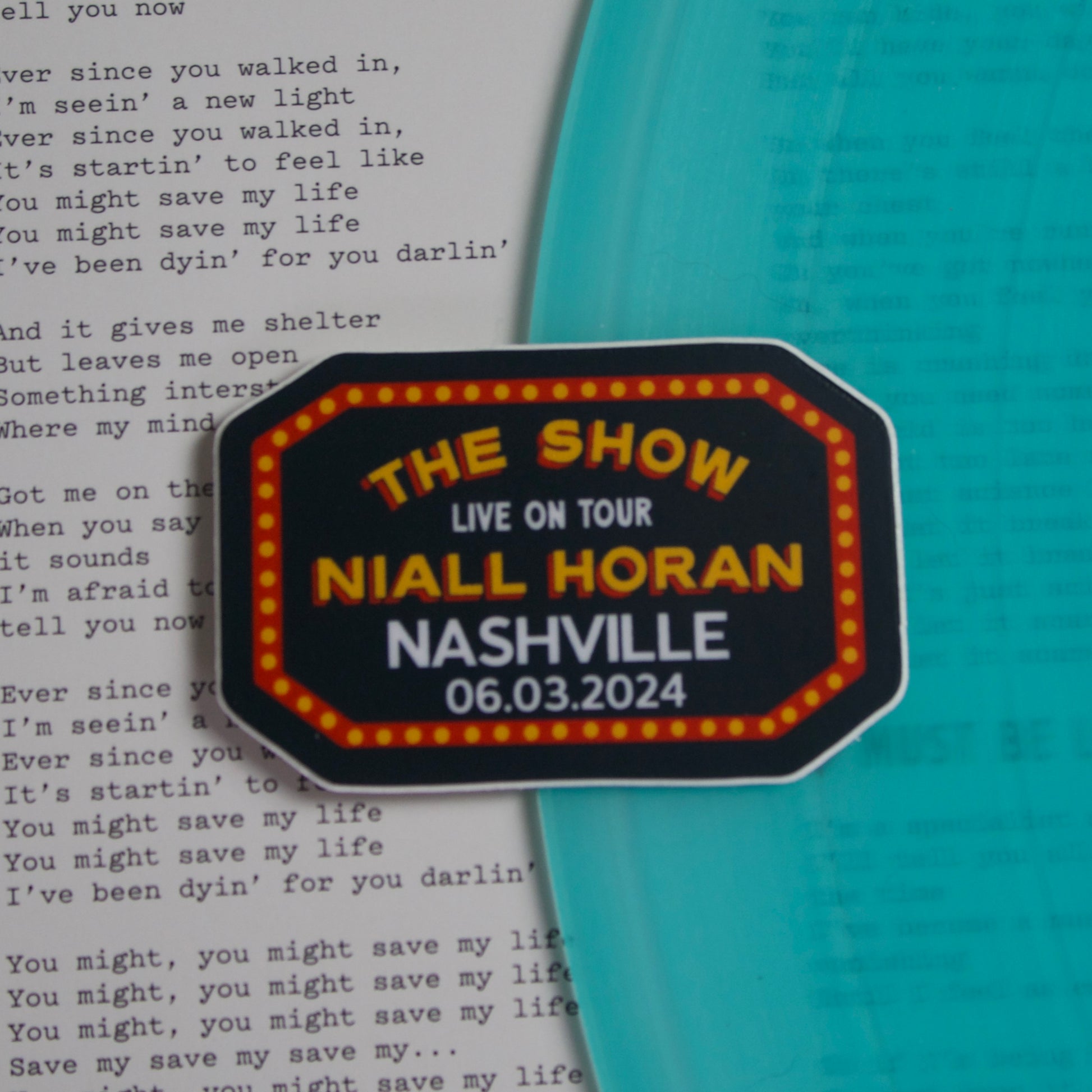 The Show Nashville Passport Sticker- this item is FREE with the purchase of any Niall item! To claim- simply add this sticker into your cart, along with another Niall item and a discount of 3.99 will automatically apply.